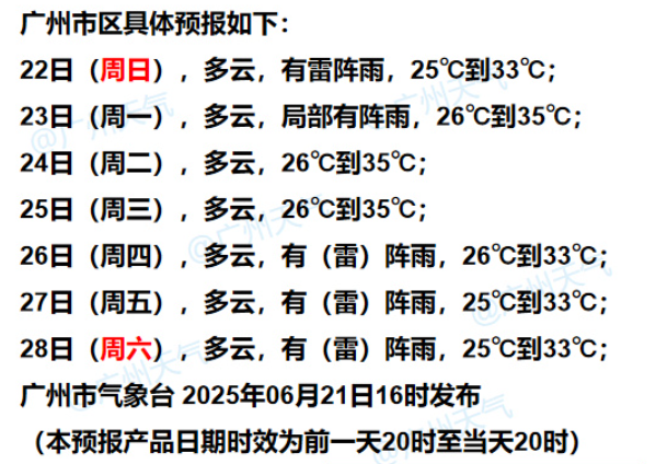 广州市气象台预计,随着副热带高压加强控制,未来几天广州降雨减弱,渐转以多云天气为主,间中有雷雨,高温炎热渐显。具体到白云,预计未来两天,白云区阳光雷雨相伴,雷雨间歇期体感闷热,户外活动请注意防暑防晒防局地雷雨。